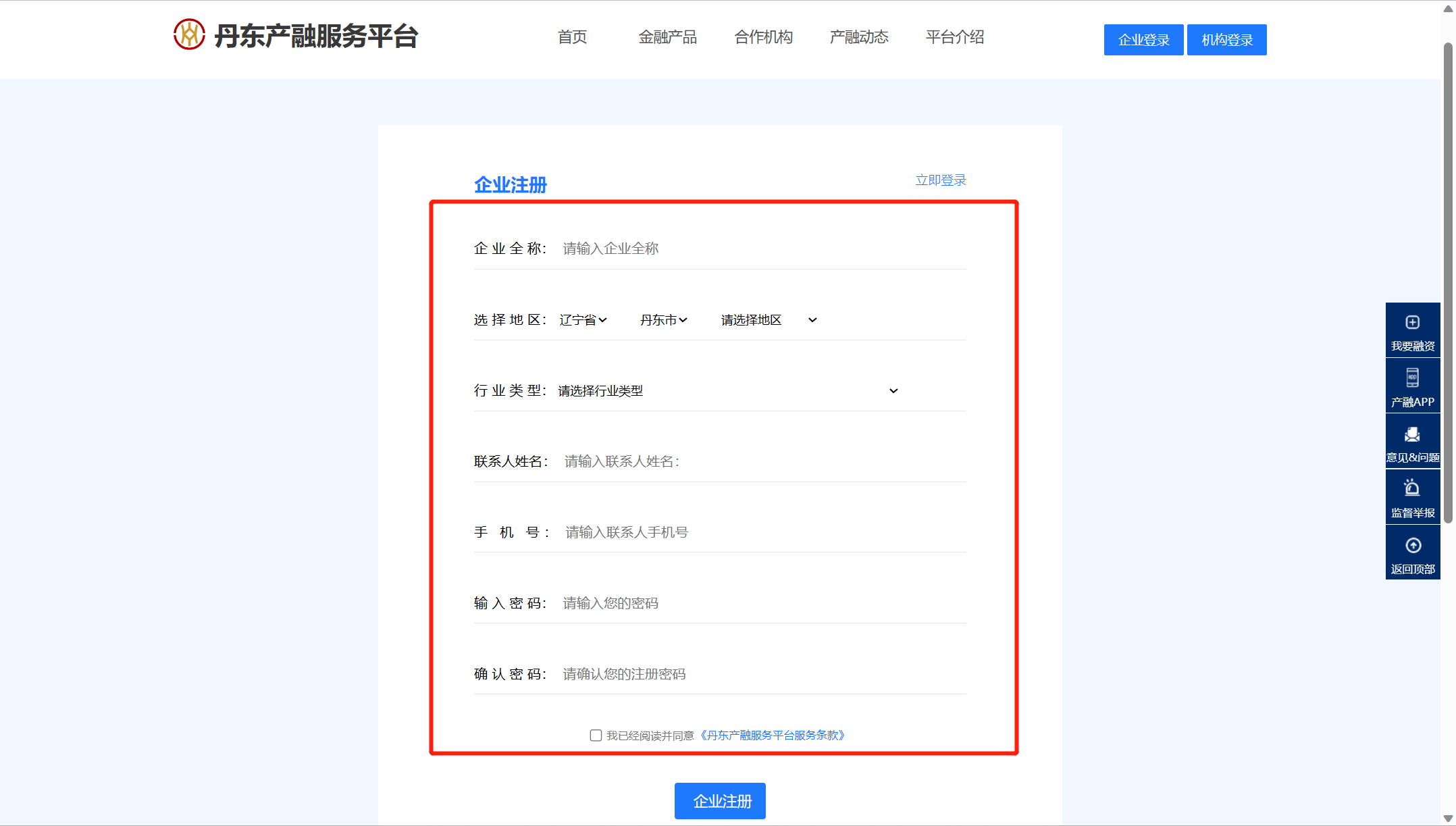 丹东产融服务平台注册流程